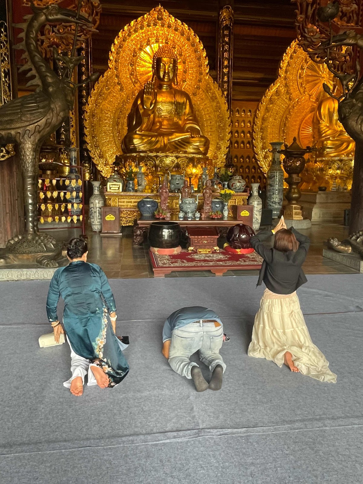 Today (Friday, 27th) we continued our exploration of the Ninh Binh area and visited the largest Pagoda in Vietnam… very impressive! Bai Dinh Pagoda Complex. Some of the statues rivalled Tibet but didn’t have the history to follow. This complex is only twenty years old and was built to keep the Buddhist population in Vietnam rather than travelling to China to celebrate big events. Hung says it is working because on every Buddhist holiday Bai Dinh hosts millions of people…like I said, it is huge. Visitors have to use electric cars to get to the start of the complex
